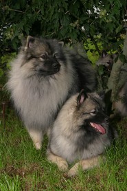 The Wolfspitz is the largest of the German Spitz family (standard no 97 FCI, 5/03/1998) and belongs to Group 5. Spitz type and primitive types. It descends from the peat dog of the Stone Age “canis familiaris palustris”, and later from the dog of the lake cities that is the earliest of the Central European breeds. In many non-German speaking countries it bears the name of Keeshond. The Wolfspitz is always on the alert, vivacious and very attached to his owner. He is very receptive but - contrary to what is stated in the standard - I wouldn’t say that it was the easiest of dogs to train. He needs an owner who understands his “language” as he is very sensitive to body language and tone of voice. |